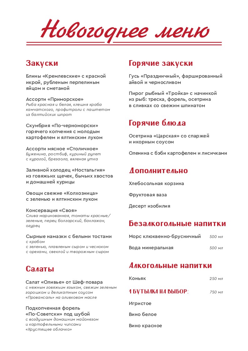 - Особое новогоднее банкетное меню – специально разработанное шеф-поваром LUCIANO для самого семейного праздника, по-домашнему вкусное и изобильное